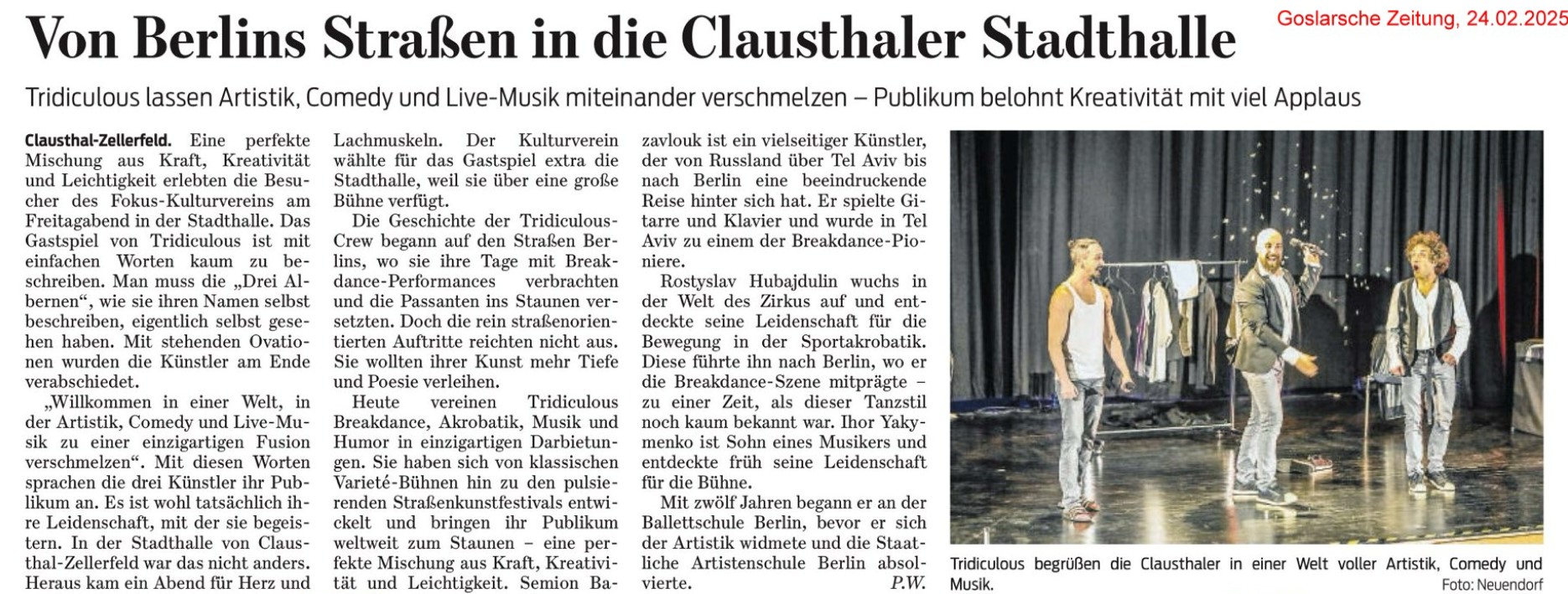 Die Goslarsche Zeitung berichtete in ihrer Ausgabe vom 24.02.2025 über die Show.