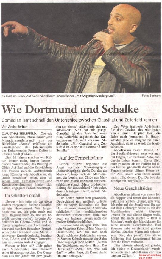 Archiv 2012 Sonnabend, 21. Januar 2012, 20.00 Uhr Glückauf-Saal, An der Marktkirche 7 Abdelkarim - „Wenn Träume Träume bleiben“ Ostwestfälischer Humor mit Migrationsvordergrund! |