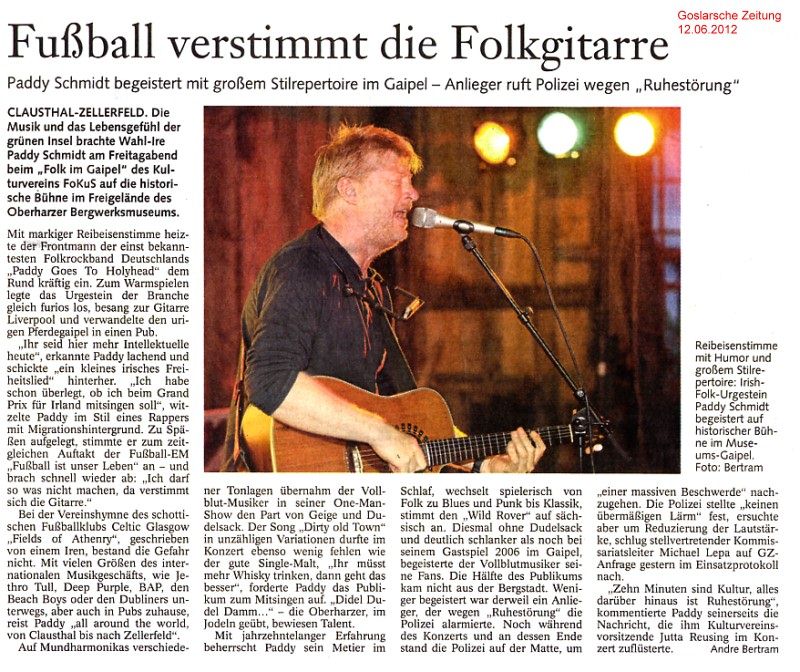 Archiv 2012 Freitag, 08. Juni 2012, 20.00 Uhr Pferdegaipel des Bergwerksmuseums Folk im Gaipel mit Paddy Schmidt |
