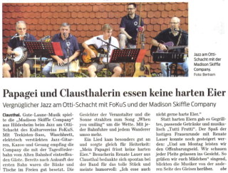 Archiv 2014 Jazz am Otti-Schacht Welches Ambiente könnte besser für einen Jazzfrühschoppen geeignet sein als das Gelände des Ottiliae-Schachtes? Drei Stunden guter Jazz werden hier in Zusammenarbeit mit dem Oberharzer Bergwerksmuseum im passenden Rahmen serviert. Wer die am Alten Bahnhof beginnende Fahrt mit der ehemaligen Tagesförderbahn nutzt, um den Veranstaltungsort zu erreichen, und möglicherweise auch dem Angebot für das leibliche Wohl nachkommt, beschert sich einen gelungenen Vormittag. Musikalisch gestaltet werden die Veranstaltungen von Gruppen aus der Region. Sonntag, 27. Juli 2014, 11 - 14 Uhr, Sonntag, 14. September 2014, 11 - 14 Uhr, Die ehemalige Tagesförderbahn fährt ab 10.30 Uhr regelmäßig. |