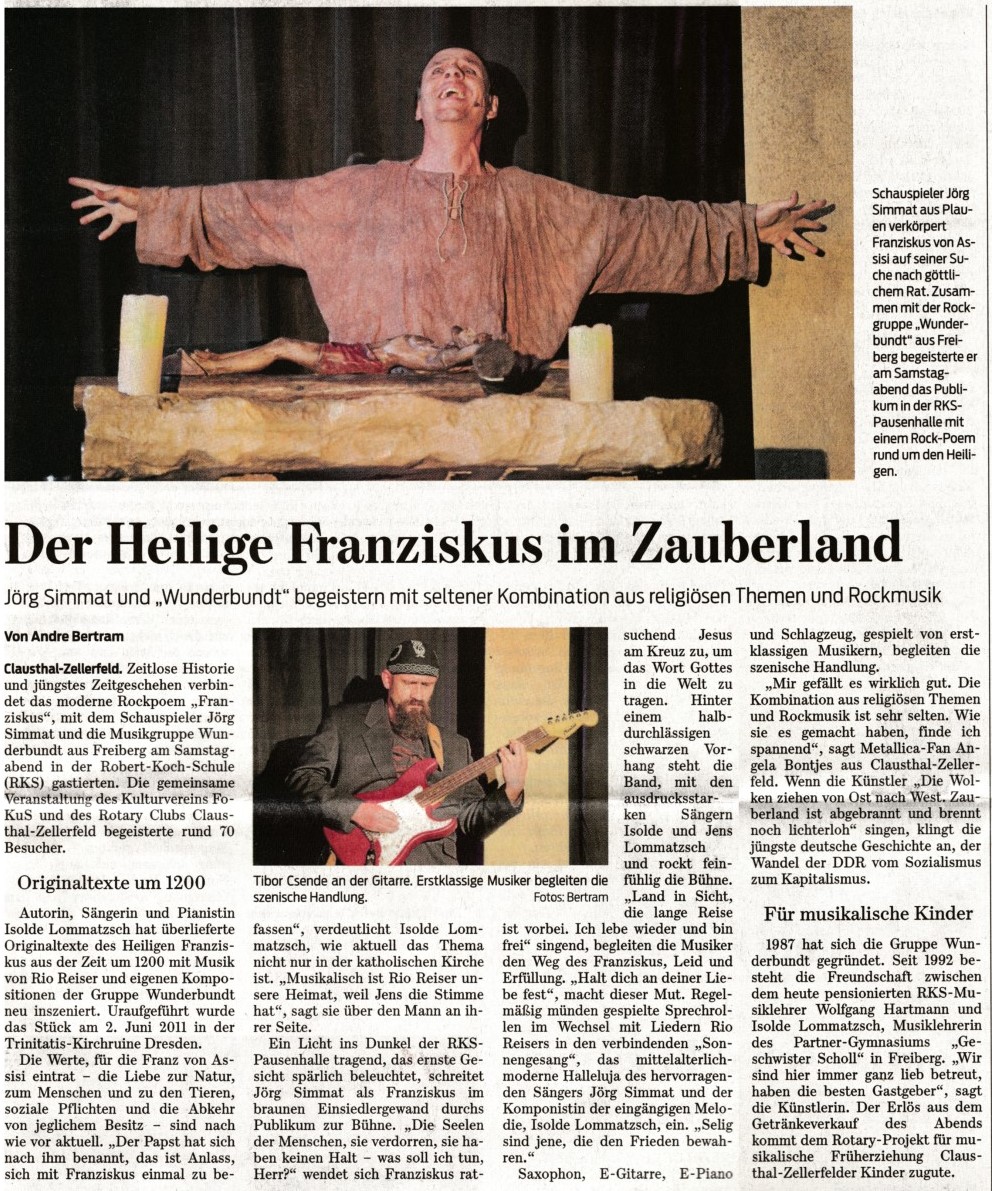 beide sind Visionäre!Der Schauspieler Jörg Simmat und die Band Wunderbuntd aus der Partnerstadt Freiberg beleuchten in ihrem Rockpoem das Leben des Heiligen, zeigen seinen mühsamen Weg und sein Ringen um Reformen.
