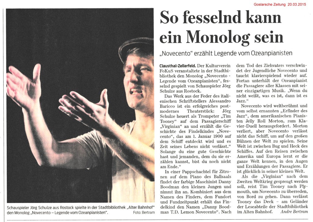 Am 20. März 2015 berichtete die Goslarsche Zeitung über den Abend.