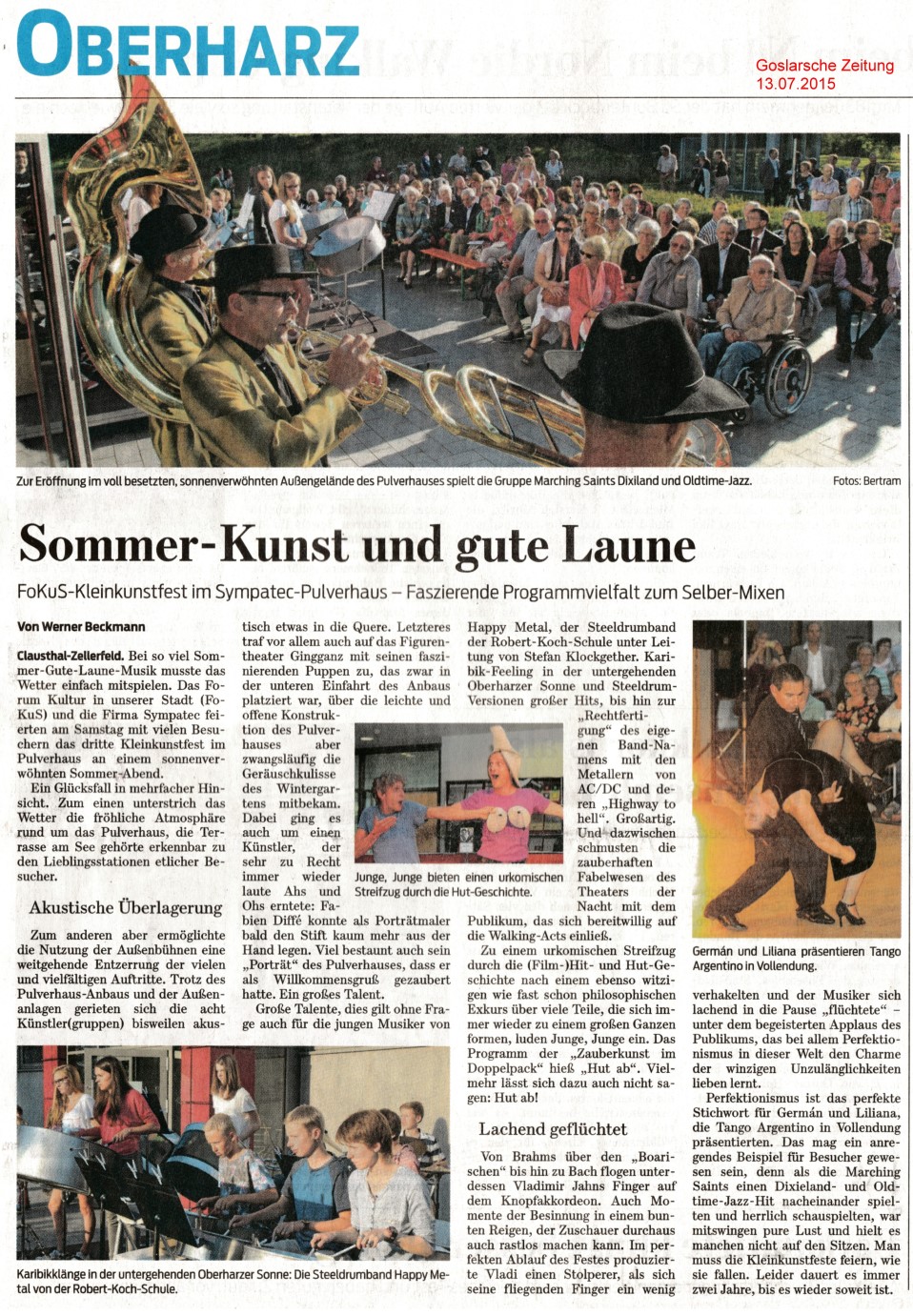 Am 13. Juli 2015 berichtete die Goslarsche Zeitung über den Abend.
