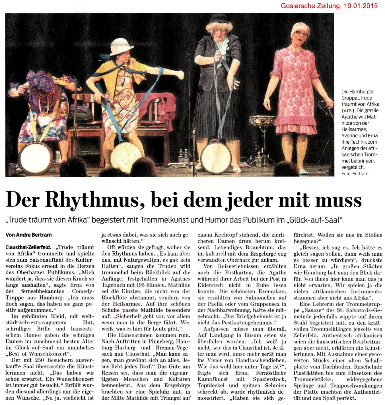 Am 19. Januar 2015 berichtete die Goslarsche Zeitung über den Abend.
