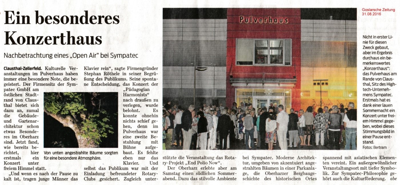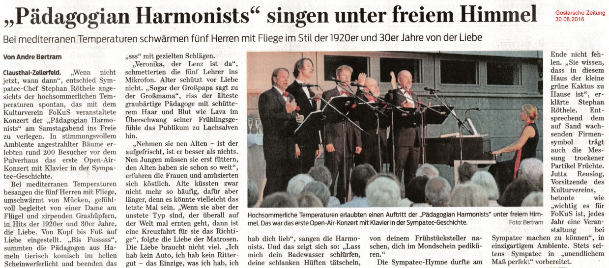 Die Goslarsche Zeitung berichtete in ihrer Ausgabe vom 30.08.2016 über das Konzert.