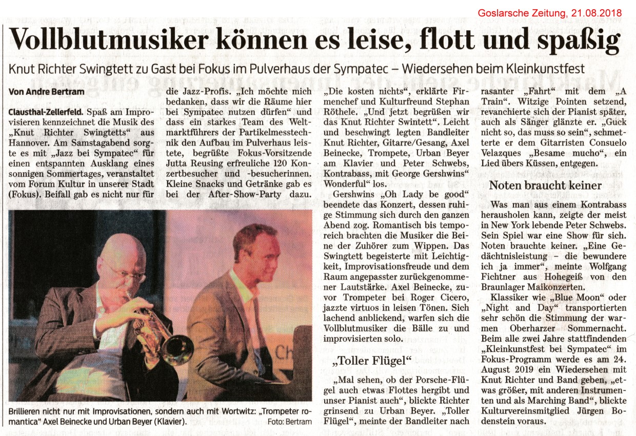 Die Goslarsche Zeitung berichtete am 21. August 2018 über die Veranstaltung.