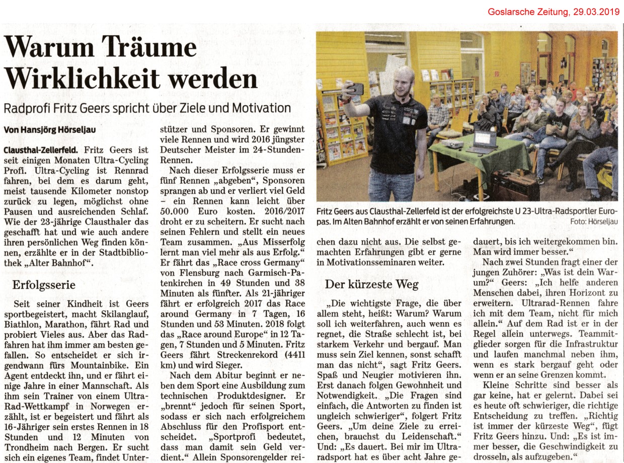 Die Goslarsche Zeitung berichtet in ihrer Ausgabe von 29. März 2019 über den spannenden Abend.