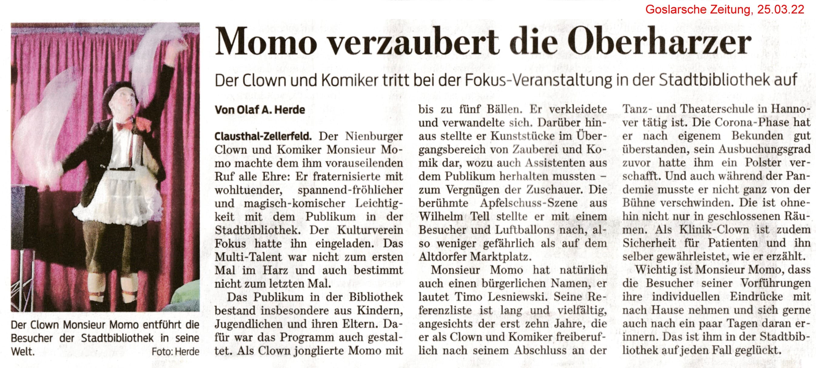 Die Goslarsche Zeitung berichtete am 25.03.2022 über den Abend.