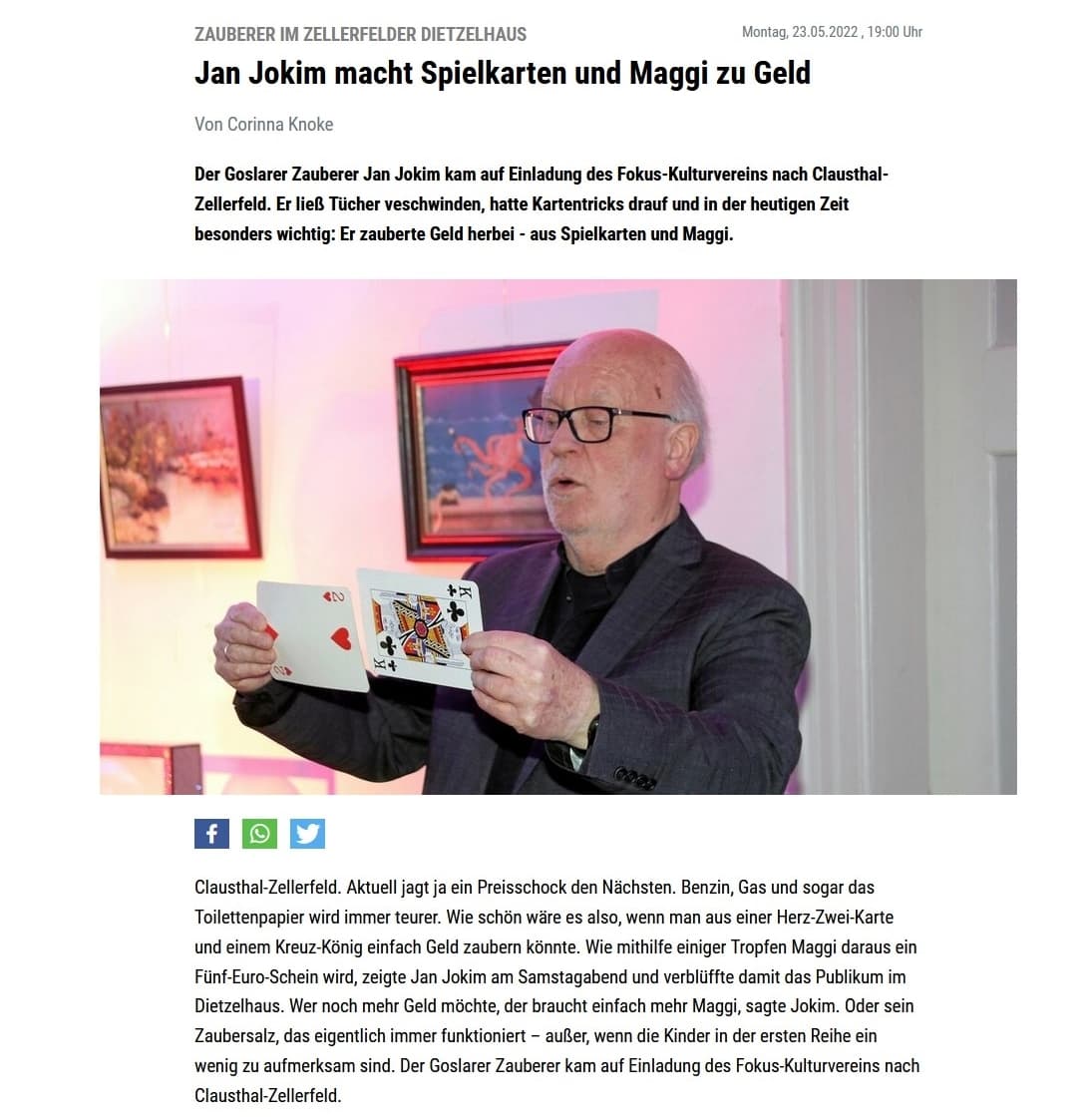 Die Goslarsche Zeitung berichtete in Ihrer Ausgabe vom 23.05.22 von dem zauberhaften Abend.