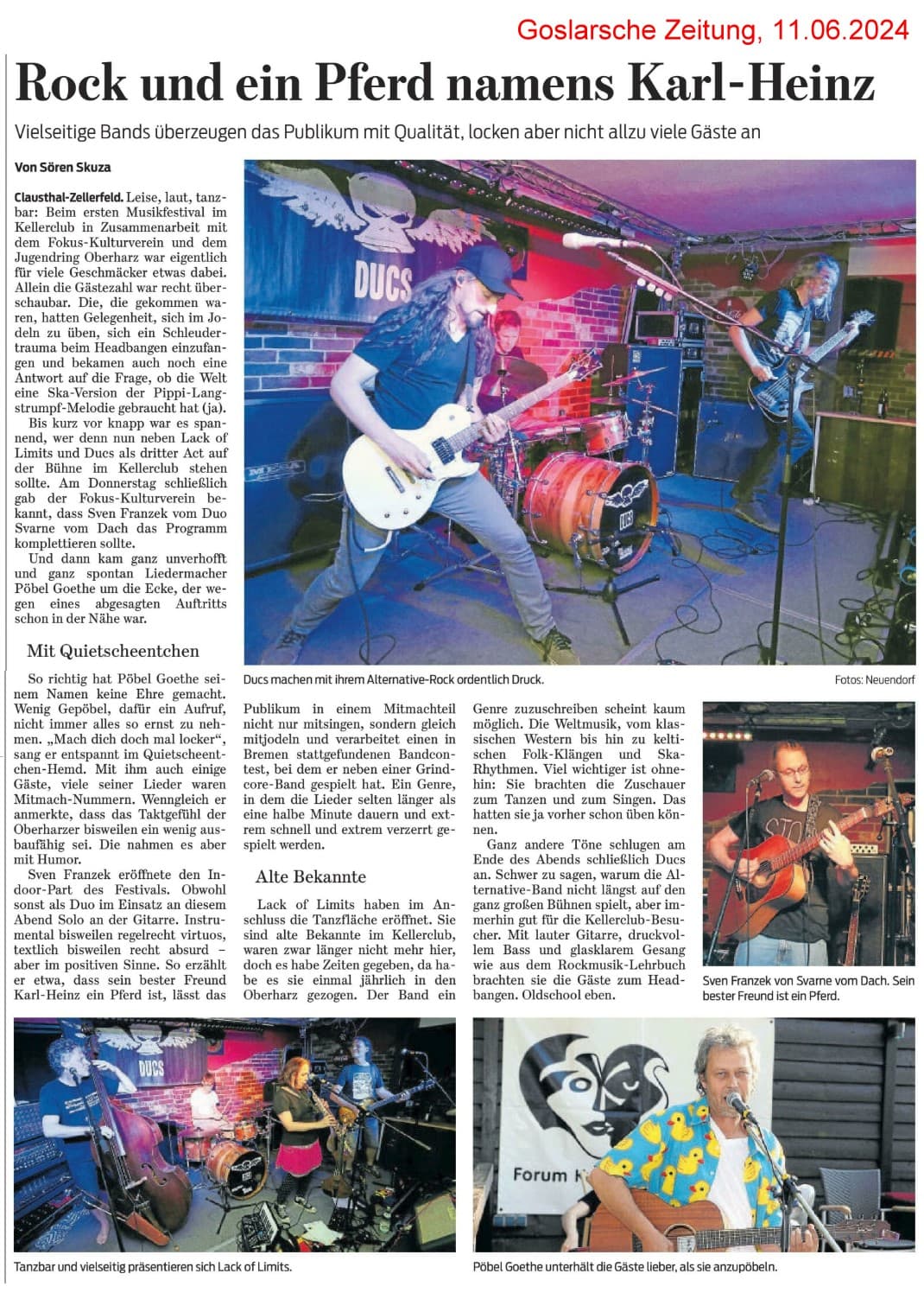 Die Goslarsche Zeitung berichtete in ihrer Ausgabe vom 11.06.2024 über den Abend.