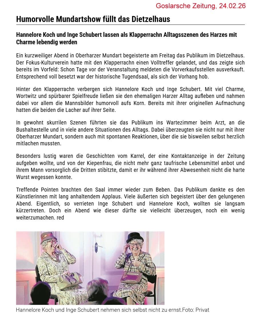 In verschiedenenen Publikationen wurde über den vergnüglichen Abend im Dietzelhaus berichtet.